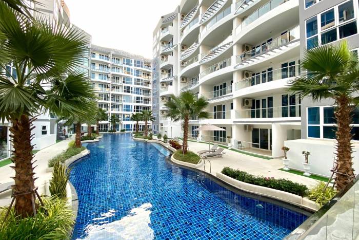 Grand Avenue Residence, a prestigious condominium development by Nova Group, redefines luxury living in the vibrant heart of Central Pattaya, Thailand. Completed in June 2018, this expansive project seamlessly blends urban convenience with an idyllic resort-style atmosphere. Strategically located on Grand Avenue, it offers residents unparalleled access to Pattaya's most iconic attractions, including the Avenue Shopping Mall, Central Festival Pattaya, and the legendary Walking Street, all just moments away. This impressive development features six low-rise buildings, each eight stories high, encompassing a total of 788 meticulously designed residential units. Spanning approximately 11 rai of prime city land, Grand Avenue Residence caters to diverse preferences with a variety of property types, from efficient studios to spacious one, two, and even select three-bedroom units. Thoughtfully designed living spaces, ranging from 36.10 to 88.14 square meters, ensure comfort and functionality for both discerning professionals and families. Residents at Grand Avenue Residence are indulged with an extensive array of upscale amenities crafted for ultimate relaxation, wellness, and entertainment. The centerpiece is a magnificent communal swimming pool, often likened to a tropical lagoon or water park, complete with invigorating jacuzzis, cascading waterfalls, and exhilarating water slides. The resort experience is further enhanced by a state-of-the-art fitness center, a serene yoga studio, rejuvenating sauna and steam rooms, and a convenient poolside bar. Families will appreciate the dedicated children's area, kids' club, and game room, while a quiet library offers a peaceful escape. The development prioritizes resident safety and convenience with 24-hour security, CCTV surveillance, key card access, and ample conventional parking.